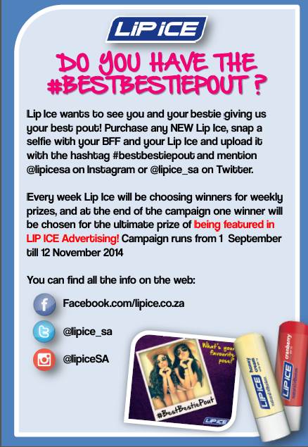 They have an amazing new campaign where I have seen people walk away with amazing prizes such as MAC and Zandos vouchers. It’s quite simple all you need to do a snap a pout pic with your bestie holding a Lip Ice product ( full details of hash tags etc. Below)