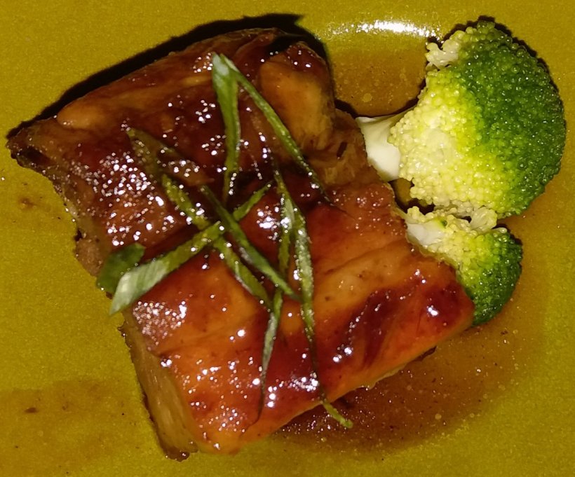 syrupy jus served with broccoli florets,