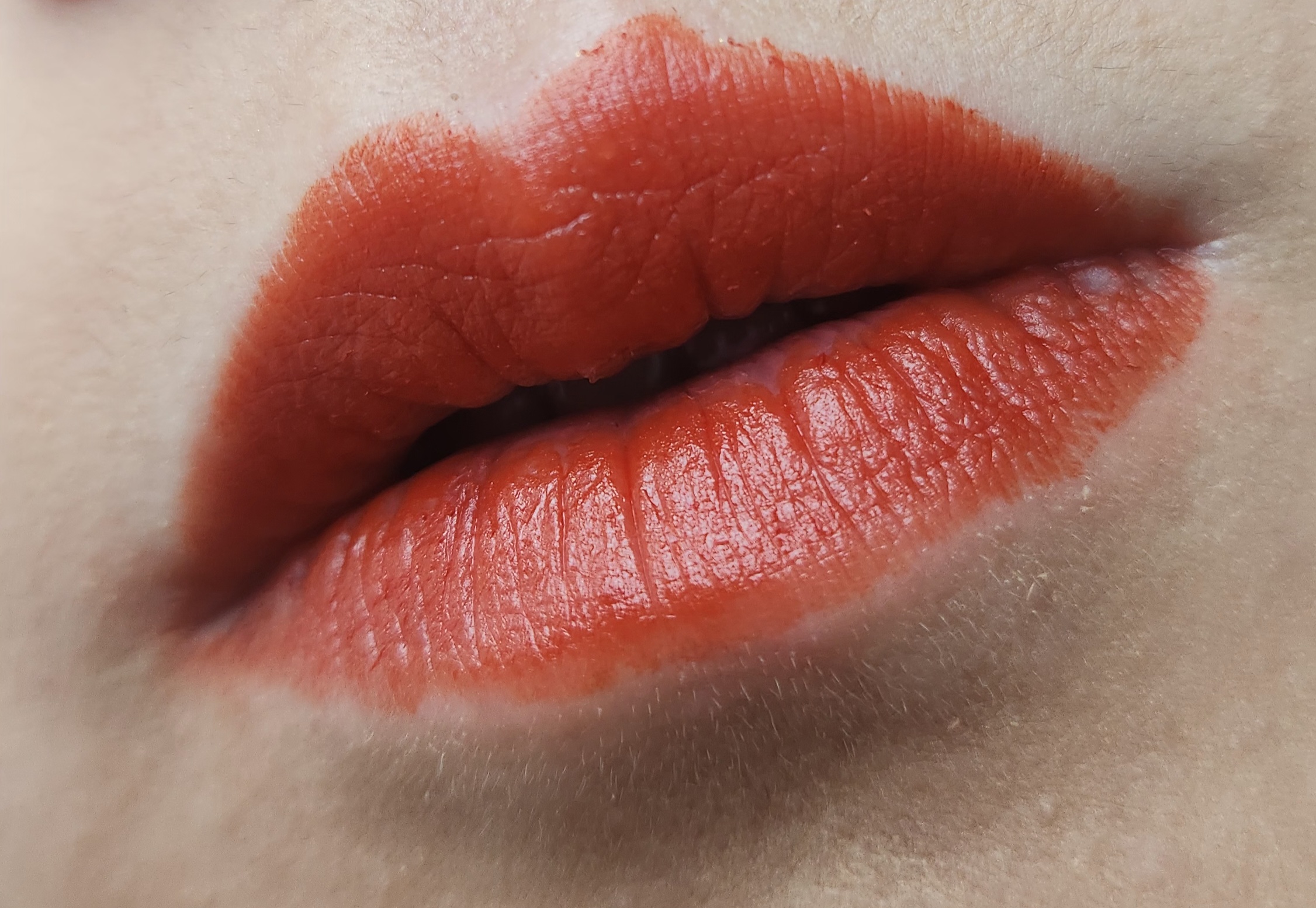 It is very easy to apply as it has a unique soft-glide technology. With one swipe there is enough pigment and colour to only need to apply one coat. It feels very light weight and skin like on the lips. It goes from cream to powder but is not drying and I would say it looks lumi matte as opposed to fully dry matte which is attributed to it’s light-diffusing gel formula. My lips feel hydrated and moisturised from the Jojoba Oil and Organic Olive Oil. It is also really long lasting as I didn’t feel the need to reapply during the day.